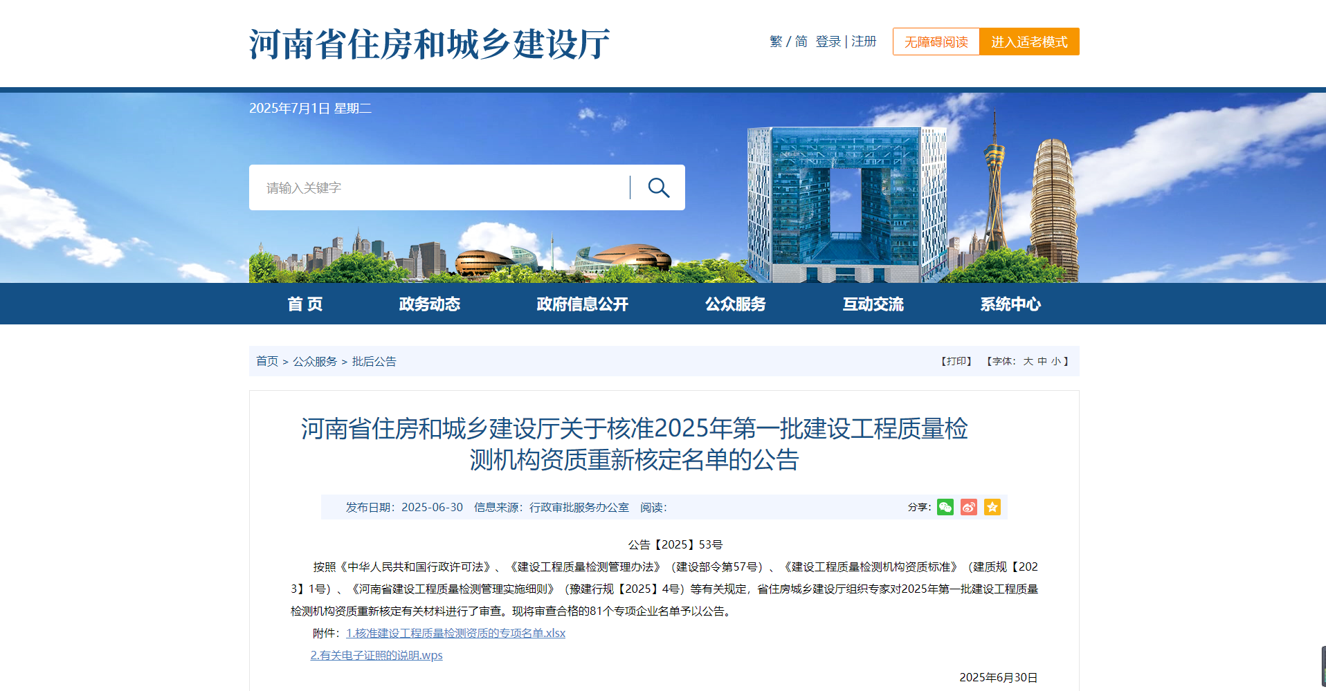 熱烈祝賀我司通過河南省住建廳2025年第一批建設工程質量檢測機構資質重新核定!?。?
